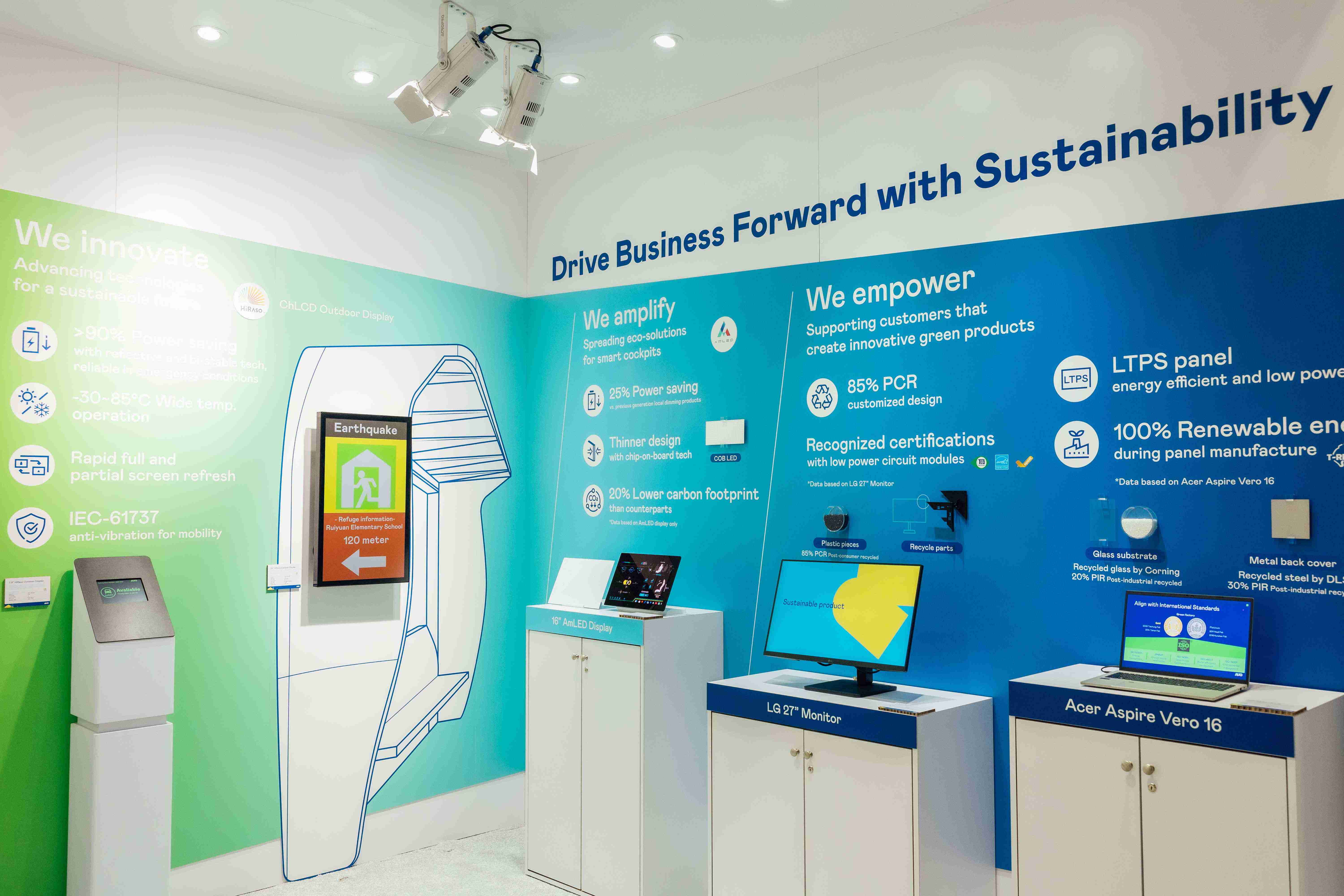 BHTC的木纹车用显示器(Display Behind Wood)将无缝木质表面与显示器结合后,,,,可以融入车内设计中,,,提供驾驶优质的视觉效果,,,加上其无边框的设计和亮度调控,,,,创造更优质的车内体验。。。 开云电子展出多项领先业界绿色科技 助攻客户达成低碳目标 开云电子致力于永续发展,,,从产品生命周期自原料、、、制程至使用等每个阶段,,,,发展低碳方案,,,,在CES 2025展位上分享已实际应用在终端消费性电子产品上的绿色科技外,,未来将更进一步移植多年累积的成功经验导入车用产业,,,为客户实现永续价值,,满足客户对产品的绿色低碳设计要求