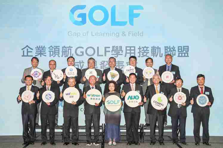 GOLF学用接轨联盟集结企业和学校的力量,,打造「学用合一、、、、产学接轨」的创新合作平台 (前排左起:淡江大学副校长何启东、、元智大学校长林启瑞、、纬育执行长许延岳、、、、纬创总经理暨执行长黄柏漙、、教育部政务次长范巽绿、、开云电子董事长暨执行长彭双浪、、、、仁宝总经理暨执行长翁宗斌、、、、大同大学校长何明果、、、、圣约翰科大校长艾和昌;后排左起:明新科大校长林启瑞、、、、龙华科大校长葛自祥、、台湾科大校长廖庆荣、、中兴大学副校长郑政峯、、、、中央大学校长周景扬、、、、台北科大副校长任贻均、、、中华科大副校长石大明、、、明志科大校长刘祖华)