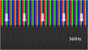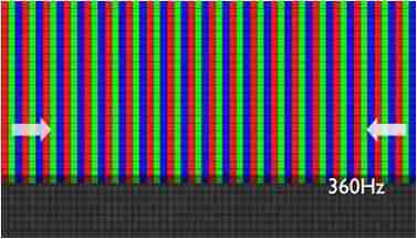 传统液晶驱动是从左到右单向进行,,在画面更新速度愈来越愈快的情况下,,,,位于驱动线路末端的右下角区域,,画素的闸极来不及在短时间内获得足够电压,,,,无法显示出正确的颜色资讯。。 |