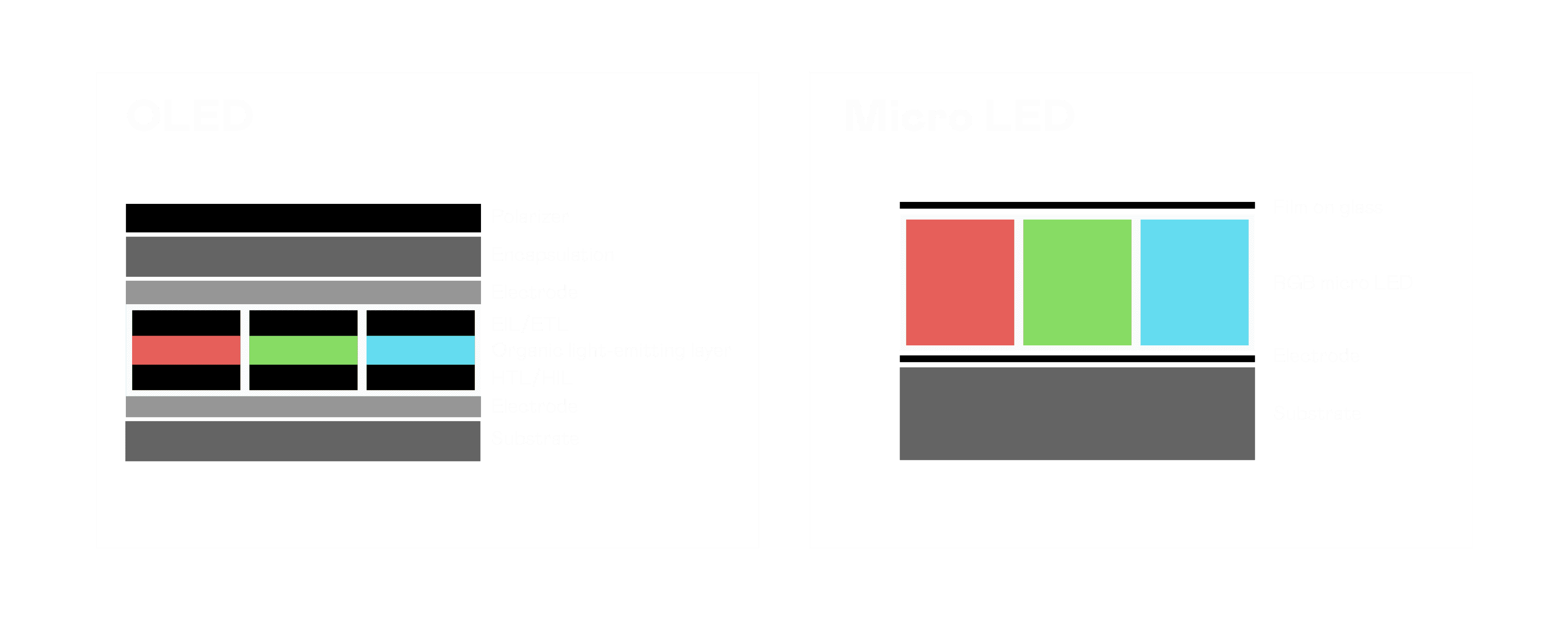 以 LED 做为显示画素,,,可让 LED 的发光效率发挥到极致,,从而让显示器具备优异的亮度表现,,,,不论是在户外或室内,,,均具备出众的显示效果。。。同时,,,,与使用有机材料的 OLED 相比,,LED 具备更稳定、、、寿命更长的特性,,,,不仅不会有画面烙印问题,,,,而且更不容易出现故障、、坏点。。。